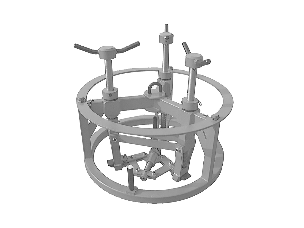 Это устройство позволяет без всяких усилий сорвать раму крышки колодца для установки на нужную высоту, с 3 подъёмниками для рамы крышки колодца с внутренним диаметром 600 - 625 мм и наружным диаметром до 815 мм наружного диаметра